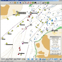 • Autopilot: with just a mouse click or two on the computer chart, SOB will control the ship's course by sending information to the autopilot, steering your vessel precisely to the route or destination waypoint as planned on the computer screen. With appropriate devices connected, the autopilot can also be used to steer your boat to a preset wind angle.
