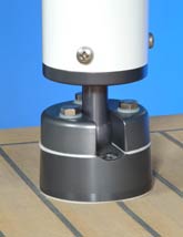 The innovative adjustable base unit rotates 360° and hinges from vertical to horizontal, allowing installation in any position including sloping decks, narrow steps and even steeply angled transoms.